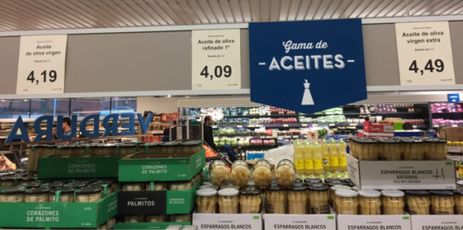 Hay fotos que resumen de un vistazo todo lo que se pueda decir y escribir. Y ésta, tomada en un supermercado de la marca alemana ALDI a las afueras de Madrid, resume muy bien lo que es hoy el mercado de consumo de aceites de oliva en España. La insistencia por parte de productores y…