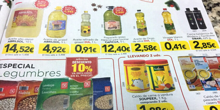La fotografía que ilustra este artículo resume muy bien esa idea de la gran distribución. Pertenece al catálogo actual de de la enseña de Cash & Carry de uno de los gigantes de la distribución alimentaria en España. En la sección de aceites para Hostelería destaca el aceite alto oleico (1,45 euros/litro); el girasol de marca a casi un euro el litro; el girasol de su marca propia a 0,91 euros/litro y un preparado graso especial para cocinar a 2,48 euros/litro y el aceite de orujo de oliva de su marca a 2,58 euros/litro. Ni una sola mención al oliva refinado, ni al virgen, ni al virgen extra.